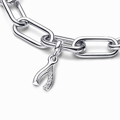 با این جناغ کوچک و درخشان به آرزوهای خود برسید. استخوان جناغ و شکستن آن بین دو نفر و برآورده شدن آرزوهای شخصی که استخوان بلندتر در دستش باقی مانده است سنتی است که این چارم بر مبنی آن طراحی و ساخته شده است. این چارم مینی ام-ای، نماد پتانسیل نامحدود شماست.شما میتوانید آن را به حلقههای زنجیرهای ام-ای خود با هر رنگ و جنسی اضافه کنید و استایلی چند لایه و متفاوت بسازید.
