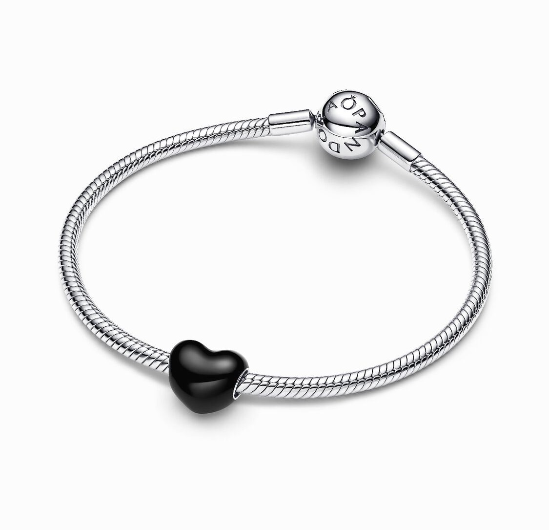 با چارم قلب صورتی متالیک پاندورا، رنگ مشکی و دراما به دستبند خود اضافه کنید! این چارم نقرهای که به صورت دستی به رنگ چشمگیر مشکی متالیک لعابکاری شدهاست به کلکسیون چارمهای شما رنگ و فضای متالیک جذابی میدهد. این چارم را داشته باشید تا کاملا چشمگیر شوید!
