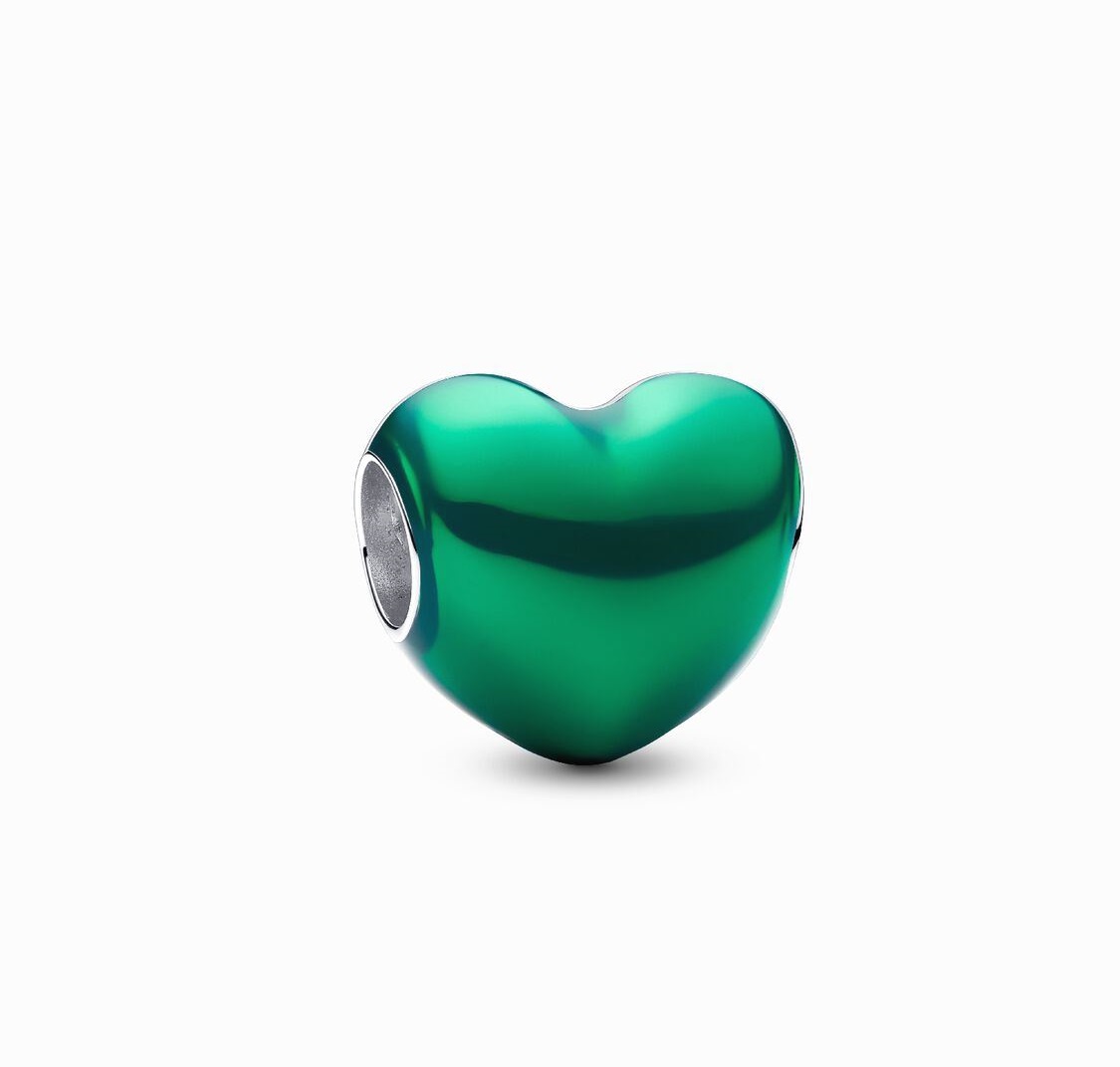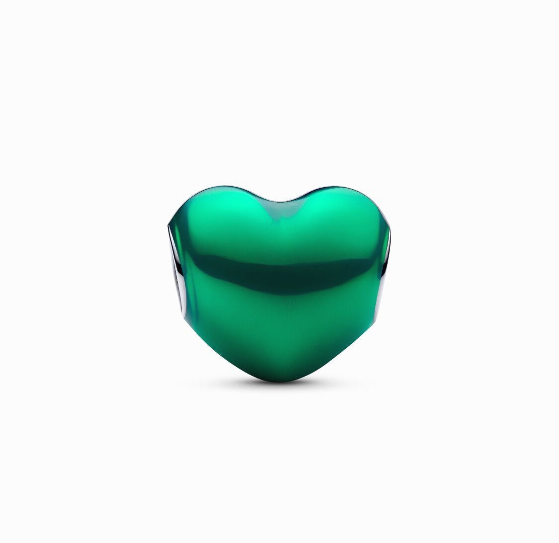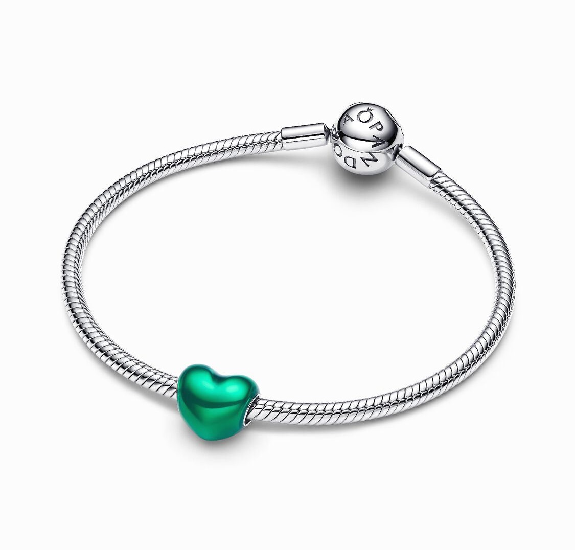 با چارم قلب سبز متالیک پاندورا، زنگ زندگی و دراما به دستبند خود اضافه کنید! این چارم نقرهای که به صورت دستی به رنگ چشمگیر سبز متالیک لعابکاری شدهاست به کلکسیون چارمهای شما رنگ و فضای متالیک جذابی میدهد. این چارم را داشته باشید تا کاملا چشمگیر شوید!