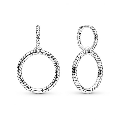 گوشواره دو حلقهای دقایق پاندورا با طرح محبوب زنجیر ماری یا مفتولی میتواند تا سه چارم را در خود داشته باشد( توجه کنید که وزن چارمها یا آویزهایی که به گوشواره اضافه میکنید بیشتر از حد مناسب نباشد تا گوشهایتان آسیب نبینند.) این گوشوارهها به گونهای طراحی شدهاند که چارمهای شما را به صورت رو به رو نشان دهند.پس با این گوشوارهها میتوانید به راحتی استایل منحصر به فرد خود را با چارمهای مورد علاقهتان بسازید.