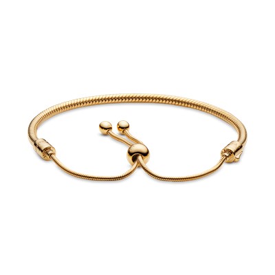 این دستبند خاص ترکیبی از دو طرح پرطرفدار پاندوراست و علاوه بر زنجیر ماری محبوب حالت کشویی به آن اضافه شده است. انتهای گیره کشویی این دستبند طلایی با نگین های شفاف برای درخشش هرچه بیشتر تزیین شده است. آن را مانند هر دستبند دقایق زنجیر ماری دیگر با مجموعه چارم هایتان شخصی سازی کرده و با گیره کشویی آن اندازه آن را برای مچ دست خود تنظیم کنید.