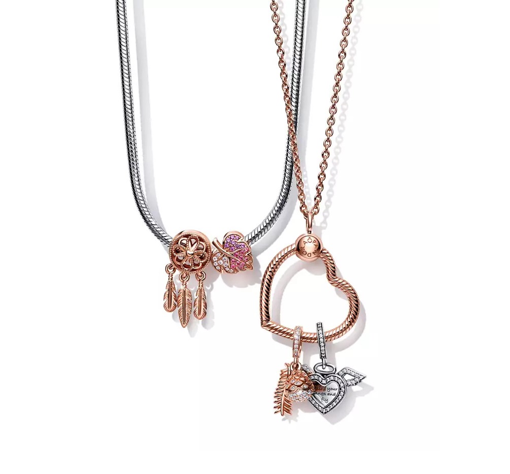 خیلی شیک باشید! آویز گردنبند بیزنجیر دقایق قلبی رز گلد پاندورا دارای روکش رز گلد ۱۴ عیار و طرح قلبی میباشد.قلب به شکل زنجیر ماری طراحی شده و روی گیرهی متصل به قلب طرفی لوگوی پاندورا و طرف دیگر آن قلبی حکاکی شدهاست.شما این آویز دقایق خود را میتوانید با حداقل ۳ چارم تزیین کنید و با زنجیری مطمن و ضخیم به گردن داشته باشید.
