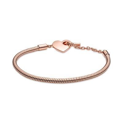 با دستبند دقایق تی-بار قلبی زنجیر طرح ماری پاندورا به استایل خود لحجهای خاص دهید.این دستبند با روکش رز گلد ۱۴ عیار نمونه به روزرسانی شدهی طرح عادی دستبند تی-بار دار قبلی پاندوراست.شما در این دستبند دقایق میتوان ۱۰ تا ۱۳ چارم قرار داد و استایل مدرن منحصر به فرد خود را ساخت.