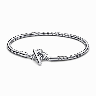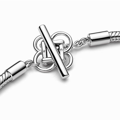 نمادی از آرامش و صلح را همیشه همراه داشته باشید. گیره تی-بار این دستبند زیبا به شکل گره آرامش چینی طراحی شده و با نگین های شفاف درخشان شده است. این دستبند دقایق را با 16 تا 18 چارم می توانید تزیین کرده و استایل شخصی خود را بسازید.