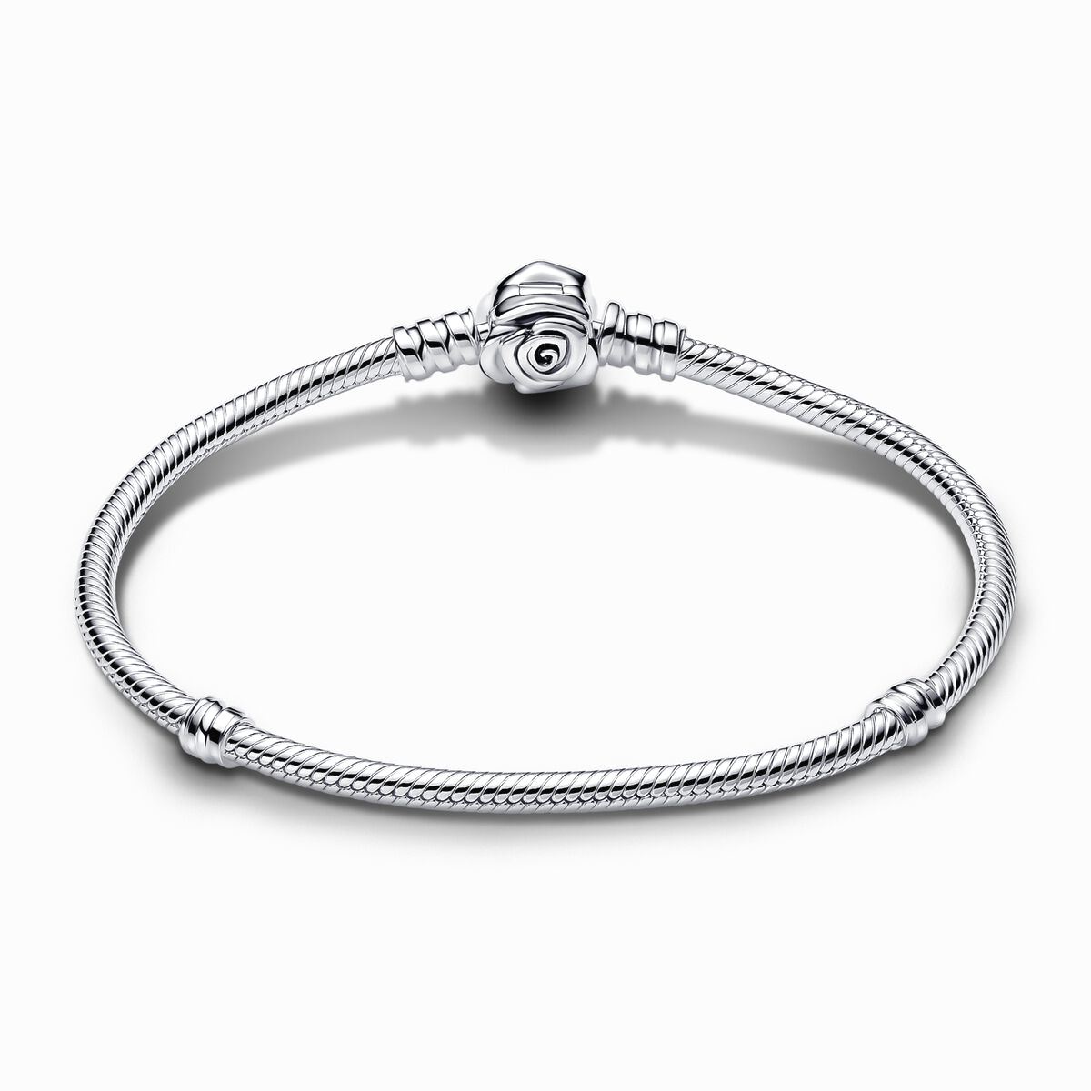حسی رمانتیک با این دستبند در استایل خود بسازید. این دستبند نقره ای چیزی فراتر از زیورآلات و راهی برای بیان عشق شماست. مانند تمامی دستبندهای دقایق پاندورا شما میتوانید این دستبند را با چارمهایتان(16 تا 18 چارم) شخصیسازی کرده و استایلی چند لایه بسازید.