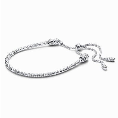 این دستبند نقرهای ترکیبی از دو طرح پرطرفدار پاندوراست و علاوه بر بافت نقطهای حالت کشویی به آن اضافه شده است. آن را مانند هر دستبند دقایق دیگری با مجموعه چارمهایتان شخصیسازی کرده و با گیره کشویی آن اندازه آن را برای مچ دست خود تنظیم کنید.