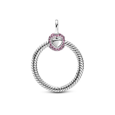 با آویز گردنبند بیزنجیر دایرهای نگین صورتی دقایق پاندورا، درخششی صورتی به استایل خودتان اضافه کنید.این قطعه نقرهای، با الهام از لوگوی تاجی پاندورا ساخته شده است.این کار طراحی زنجیر ماری پاندورا را داشته و گیره توپی شکل آن با نگینهای درخشندهی صورتی تزیین شده است. شما این آویز را مانند تمامی کارهای دقایقی دیگر پاندورا،میتوانید با چارمهای خود تزیین کنید.این آویز را باز کرده و حداقل ۳ چارم به آن اضافه کنید.برای چشمگیری هرچه بیشتر میتوانید از چارمهای روکش رز گلد دار استفاده کنید.