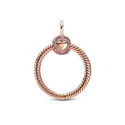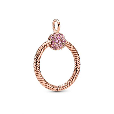 با آویز گردنبند بیزنجیر دایرهای نگیندار رزگلد دقایق پاندورا، درخششی صورتی به استایل خودتان اضافه کنید.این قطعه نقرهای، با الهام از لوگوی تاجی پاندورا ساخته شده است.این کار طراحی زنجیر ماری پاندورا را داشته و گیره توپی شکل آن با نگینهای درخشندهی صورتی تزیین شده است. شما این آویز را مانند تمامی کارهای دقایقی دیگر پاندورا،میتوانید با چارمهای خود تزیین کنید.این آویز را باز کرده و حداقل ۳ چارم به آن اضافه کنید.برای چشمگیری هرچه بیشتر میتوانید از چارمهای روکش رز گلد دار استفاده کنید.