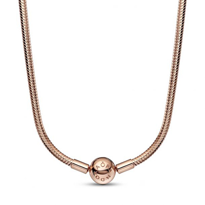 این بار طرح محبوب زنجیرهای ماری یا مفتولی پاندورا همراه با گیرهی کروی لوگودار پاندورا به صورت گردنبند در دو رنگ برای شما موجود است.رنگ رزگلد این گردنبند دارای روکش رزگلد ۱۴ عیار بوده و شما میتوانید این گردنبندهای ساده و در عین حال شیک را با گیرهی چارم مورد علاقه خود ست کنید.