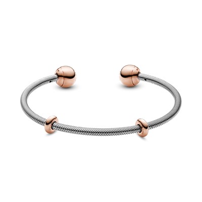 اگر به دنبال النگویی متفاوت و چشمگیر میگردید، دستبند النگویی باز گیرهدار طرح ماری پاندورا بهترین انتخاب برای شماست.این النگوی باز دارای طرح زنجیرهای ماری پاندورا بوده و گیرههای آن روکش رز گلد ۱۴ عیار دارند.این گیرهها از جنس سیلیکون بوده و به همین دلیل در جای خود ثابت میمانند.برای استایلی پاندورایی این طرح کاملا منحصر به فرد را در دست داشته باشید.