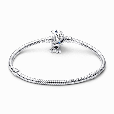 عشق خود به ماه و آشمان شب را با این دستبند نشان دهید. این دستبند دقایق نقرهای، که به صورت دستی با گیره ای به شکل ماهی هلالی و ستاره های آویز طراحی و ساخته شده است حتی به تنهایی خیره کننده است. پشت گیره این دستبند پیام "رویای بزرگ داشته باش"(Dream Big) حکاکی شده است. مانند تمامی دستبندهای دقایق پاندورا شما میتوانید این دستبند را با چارمهایتان شخصیسازی کرده و استایلی چند لایه بسازید.