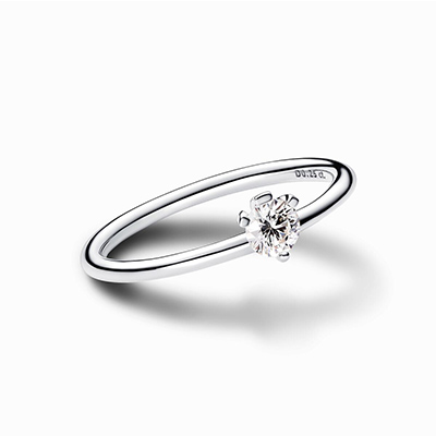 این حلقه زیبا از جنس نقره بوده و دارای الماسی ساخته شده در آزمایشگاه با قیراط 0.25 است. این حلقه نقره ای ساده با پنجه خود بهترین گزینه برای ساخت ظاهری مدرن است. شما می توانید این طرح را با الماس های دیگر پاندورا ست کرده و بیشتر از همیشه بدرخشید.