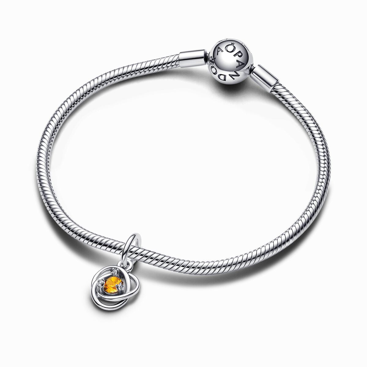 با اضافه کردن چارمهای آویز دایرهی ابدی نگیندار پاندورا به دستبندهای خود رنگ و شخصیتی جدید ببخشید.شما میتوانید با این چارم زیبا، تولدی در ماه نوامبر ( ۱۰ آبان تا ۹ آذر ) را جشن بگیرید.این طرح خاص که چند دایره در هم تنیده را نشان میدهد، در مرکز خود دارای نگینی رنگی و درخشان است.هر یک از نگینها و رنگ آنها به عنوان نمادی برای ماه تولد اشخاص عمل میکنند.این نگین عسلی، نماد شادی، سخاوت و تعادل برای متولدین ماه نوامبر است.شما میتوانید آن را به کلکسیون شخصی خود اضافه کنید یا به یکی از عزیزانتان که در ماه نوامبر متولد شدهاست، هدیه دهید.