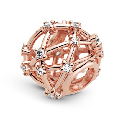 با این چارم تو خالی و زیبای پاندورا صورت فلکی و شبهای پر ستاره را روی دستبند خود داشته باشید.این چارم با روکش رزگلد ۱۴ عیار، دستساز بوده و با الهام از ستارههای صور مختلف فلکی و کهکشانی طراحی و ساخته شدهاست.برای تقلید درخشش ستارگان آسمان این چارم با نگینهای درخشان و شفاف زیرکُنیا تزیین شدهاست.این چارم را به دستبند دقایق خود اضافه کرده و علاقهتان به آسمان شب و زیباییهایش نشان دهید.