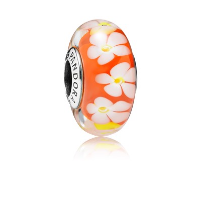 چارم مهره‌ای طرح گل‌های نارنجی کریستال مورانو پاندورا