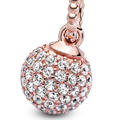 استایل خود را با آویز گردنبند توپ نگیندار رزگلد پاندورا درخشندهتر از همیشه کنید.این آویز زیبا با روکش رزگلد ۱۴ عیار، برای درخشش هرچه بیشتر با ۸۸ نگین زیرکُنیا شفاف تزیین شدهاست.این توپ کوچک که مانند یک توپ کروی دیسکو نور را منعکس میکند بهترین گزینه برای آوردن درخشش به استایل روزانه شما میباشد.میتوانید آن را در مرکز یک گیره دایرهای قرار داده یا با زنجیرهای عادی پاندورا ست کرده و همواره همراه داشته باشید.