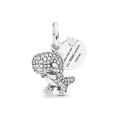 هدیه ای عالی برای یک دوست خاص، این چارم دایناسور که از روی عشق غرش می کند را به مجموعه خود یا دوستان عزیزتان اضافه کنید. این دایناسور کوچک که با نگین های شفاف و درخشان روی سطح خود تزئین شده است، در کنار دیسکی که روی آن عبارت «تو دوست فوقالعاده من هستی» حکاکی و نماد پروانه پاندورا با لعاب صورتی رنگ شده است، قرار دارد.این چارم آویز را به یاد دوستی های خاص خود به دستبند یا گردنبند خود اضافه کرده و بدرخشید.