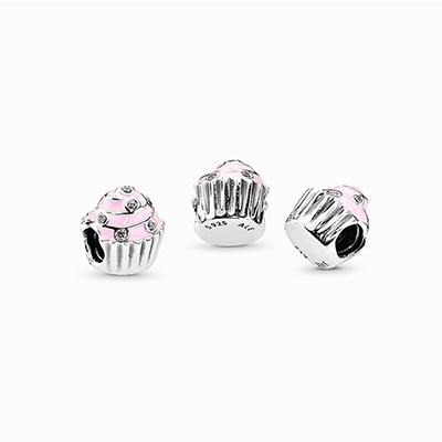 به خود شیرینی دهید! این قطعه که به صورت دستی ساخته و لعاب کاری شده است کاپ کیکی صورتی است که به استایل شما شیرینی می بخشد. این چارم مهره ای برای درخشش هرچه بیشتر با نگین های شفاف تزیین شده است. آن را به چارم های خوراکی دیگر خود اضافه کرده و علایق خود را به جهان نشان دهید.