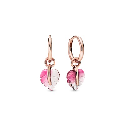 نقطه ی سر خط برای هر استایلی با ترکیب رنگ صورتی! این گوشواره های رزگلد هر کدام دارای برگی صورتی از جنس کریستال مورانو هستند که به صورت دستی ساخته شده و هرکدام با دیگری کمی تفاوت دارند. اگر احساس ماجراجویی کردید و تفاوت بیشتری می خواستید، می توانید برگ ها را از حلقه ها جدا کنید و گوشواره های خود را مطابق با روحیه روز خود حالت دهید.