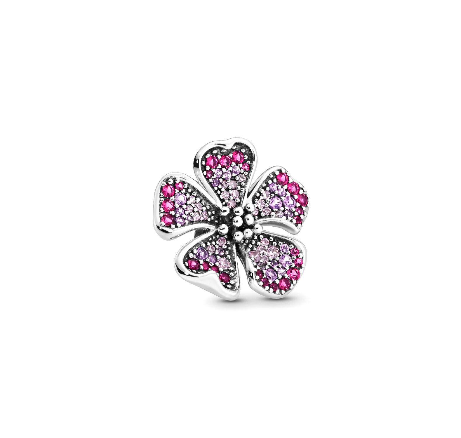 با این چارم درخشان شکوفه هلو از جنس نقره استرلینگ، طبیعت را در مرکز توجه قرار دهید. این طراحی بزرگ به شکل گل یا شکوفه هلو، با سنگهای صورتی در طیفهای هماهنگ تزئین شده و انتخابی ایدهآل برای ایجاد ظاهری جسورانه و چشمگیر است.