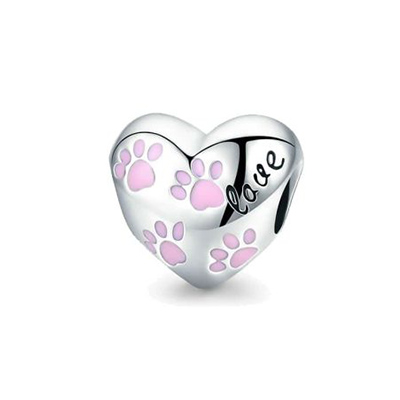 با این چارم نقرهای و قلبی زیبا و جاهای پنجهی صورتی روی آن عشق خود به حیوانات خانگیتان را در استایل خود نشان دهید.این چارم بخش جدا نشدنی هر دستبند با تم عشق به حیوانات است.روی این چارم مهرهای زیبا کلمهی "عشق" (Love) حکاکی شدهاست تا شما را همواره به یاد دوستان پشمالو و بامزهتان بیاندازد.لعابکاری جاهای پنجهی این چارم قلبی زیبا به صورت دستی انجام شدهاست.