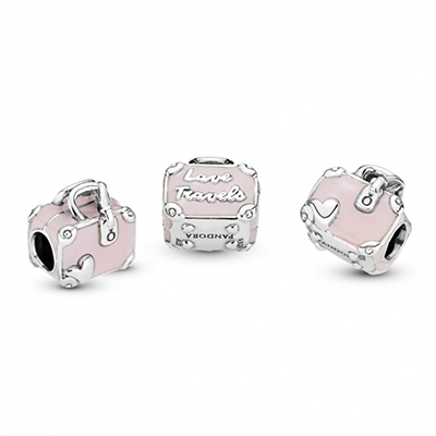 برای ماجراجویی و سفر بعدی خود چمدانهایتان را بسته و با پاندورا آماده شوید.این چارم زیبا و نقرهای از طرفی با لوگو و تاج پاندورا تزیین شده و در طرف دیگر با پیام "عاشق سفرها" (Love travels) به شما برنامههای سفرتان را یادآور میشود.این چارم به صورت دستی با لعاب صورتی لعابکاری شده و بهترین گزینه برای علاقهمندان به سفر میباشد.