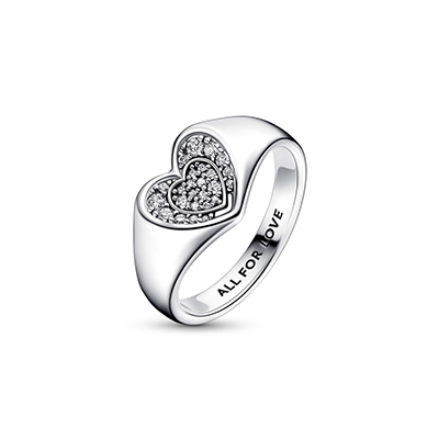 این حلقه زیبا را به یاد عشقی که همه چیز خود را برای آن فدا کرده اید همواره در دست داشته باشید یا به شخصی عزیز هدیه دهید. این حلقه درخشان و پهن نقره ای با قلبی تزیین شده با نگین های شفاف میدرخشد و پیام "همه چیز برای عشق" (All for love) روی آن حکاکی شده است تا به شما قدرت عشق را یادآوری کند.