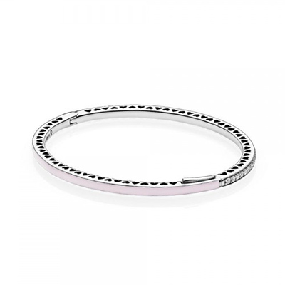 با دستبند النگویی قلبهای درخشان صورتی روشن پاندورا عشقی رنگارنگ را به استایل خود بیاورید. این دستبند النگویی نقره ای به صورت دستی با نگین های شفاف تزیین و با لعاب رنگی لعاب کاری شده است. این طرح در رنگ های مختلف موجود بوده و شما می توانید آن را به تنهایی در دست داشته یا با سایر رنگ ها ست کرده و استایل شخصی خود را بسازید.