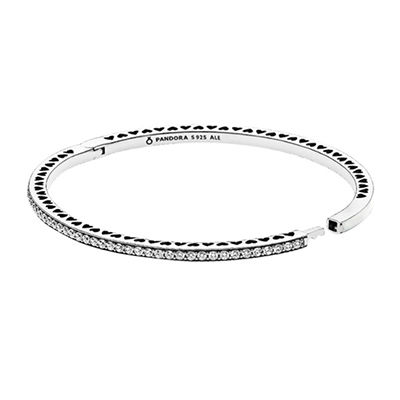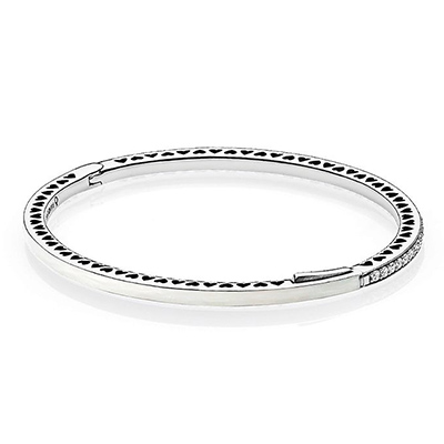 با دستبند النگویی قلبهای درخشان سفید پاندورا عشقی رنگارنگ را به استایل خود بیاورید. این دستبند النگویی نقره ای به صورت دستی با نگین های شفاف تزیین و با لعاب رنگی لعاب کاری شده است. این طرح در رنگ های مختلف موجود بوده و شما می توانید آن را به تنهایی در دست داشته یا با سایر رنگ ها ست کرده و استایل شخصی خود را بسازید.