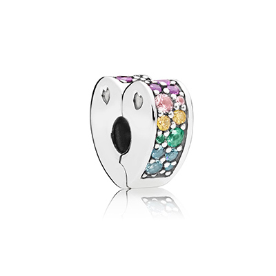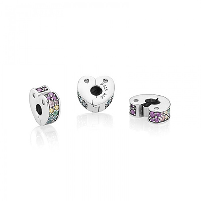 چارم کلیپی قلبی درخشان نقره‌ای رنگین‌کمان پاندورا