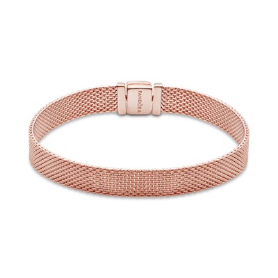 مجموعهی رفلکشن پاندورا، با طراحی مدرن بهترین و جدیدترین روش برای شخصیسازی استایل شماست.این مجموعه چارمهای مخصوص خود را داشته و شما میتوانید یک فصل جدید را برای استایل خود شروع کنید.این دستبند با روکش رزگلد ۱۴ عیار را با دستبندهای دیگر این مجموعه ست کرده یا به تنهایی در دست داشته باشید.