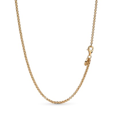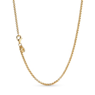 با زنجیر گردن رولو پاندورا روش جدیدی برای پوشیدن چارمهای جذاب خود کشف کنید.طراحی این زنجیر دستساز با روکش طلای ۱۴ عیار به گونهای است که در سه طول متفاوت قابل تنظیم است.میتوانید به آن چارمها و استاپرهای مورد علاقه خود را افزوده و حضور خود را خیرهکننده کنید.به این زنجیر میتوانید گوشوارههای طلایی و درخشان پاندورا را برای ظاهری شیک و یکدست اضافه کنید.