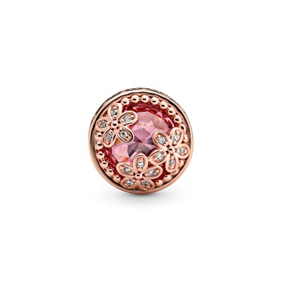 با چارم مهرهای گلهای مروارید و نگین صورتی رزگلد پاندورا، زیبایی صورتی بهار را جشن بگیرید.این چارم مهرهای و توخالی در مرکز خود نگین بزرگ و صورتی داشته که اطراف آن را گلهای مروارید یا دیزی احاطه میکنند.دیزیهای این چارم با نگینهای کوچک شفاف زیرکُنیا تزیین شده و این چارم دارای روکش رزگلد ۱۴ عیار میباشد.آن را به مجموعهی عیدانه و بهاری خود اضافه کرده و باغ خود را کامل کنید.