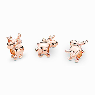 این چارم زیبا را به دستبند خود اضافه کرده و حس و حال تعطیلات کریسمس را به استایل خود بیاورید. این گوزن زیبا با روکش رزگلد 14 عیار با نگین های درخشان تزیین شده است.این قطعه صورتی را به دستبند دقایق خود اضافه کنید تا ظاهری منحصر به فرد ایجاد کنید.