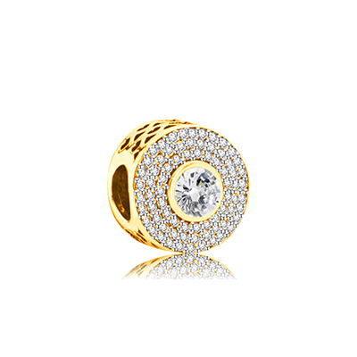 با این چارم مهرهای و طلایی با روکش طلا ۱۴ عیار، استایلتان را درخشندهتر از همیشه کنید.این چارم دارای نگین شفاف بزرگی در مرکز خود بوده که اطراف آن را سه ردیف نگین شفاف کوچکتر زیرکُنیا احاطه میکنند.این چارم طلایی را میتوانید برای ایجاد ترکیب رنگ با دستبند نقرهای یا رزگلد خود ست کرده یا مجموعهی طلایی خود را کاملتر کنید.