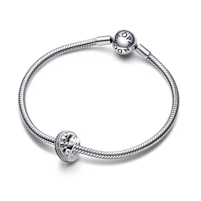 یک چارم ظریف و شیک برای اضافه شدن به مجموعهی خاص شما.این چارم زاویه دار دارای حلقهای درخشان تزیین شده با مهرههای برجستهی نقرهای بوده و شکل هندسی منحصر به فردی دارد.این چارم زیبا را به مجموعهی پاندورایی خود اضافه کرده و با ابعاد و بافت خاص این چارم استایل خود را متفاوت کنید.