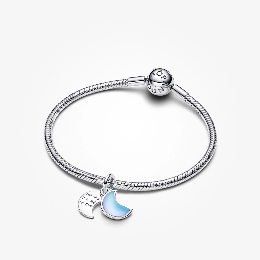 این چارم دوآویزی زیبا از نقره استرلینگ ساخته شده و طراحی آن شامل یک هلال ماه درخشان و یک دیسک آویزی تکمیلی است که با حرکت نرم، جلوهای رویایی و آرامشبخش ایجاد میکنند. سطح هلال ماه با جزئیات ظریف و نگینهای ریز زیرکونیا تزئین شده و دیسک پشتی نیز جلوهای لطیف و نورانی دارد. این ترکیب، نمادی از آرامش شب، رؤیاها و امیدهای درونی است.با چارم هلال ماه دوآویزی پاندورا، زیبایی آرام شب را همیشه همراه خود داشته باشید — جواهری نمادین، درخشان و لطیف.