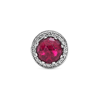 با این چارم درخشان و نقرهای به دستبند دقایق مورد علاقه خود درخششی منحصر به فرد اضافه کنید و استایلی خیره کننده بسازید.این چارم دستساز در هر زاویهای چشم نواز است و نگین زرشکی مرکزی و بزرگتر برش خورده است تا نور را به طور خاصی منعکس کند.این نگین مرکزی با ردیفی از نگینهای شفاف و درخشان کوچکتر احاطه شدهاست.این چارم بهترین هدیه برای سالگردها و یا هر مناسبت مهم دیگر در زندگی شما میتواند باشد.