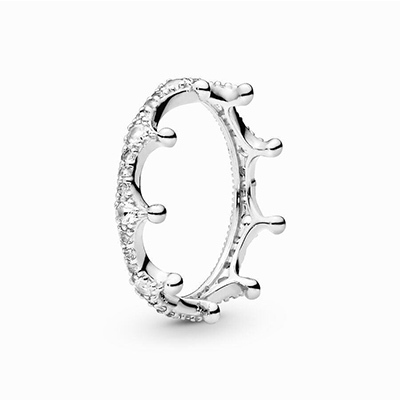 استایل خود را با این تاج کوچک کامل کنید.اشرافیت و کلاس شخصیت خود را با این حلقه خاص در استایلتان نشان دهید. برای درخشش هرچه بیشتر این قطعه نقره ای با نگین هایی شفاف تزیین شده است.شما می توانید این حلقه را به تنهایی و به صورت روزانه در دست داشته یا با سایر حلقه های پاندورا ست کرده و استایلی شخصی بسازید.