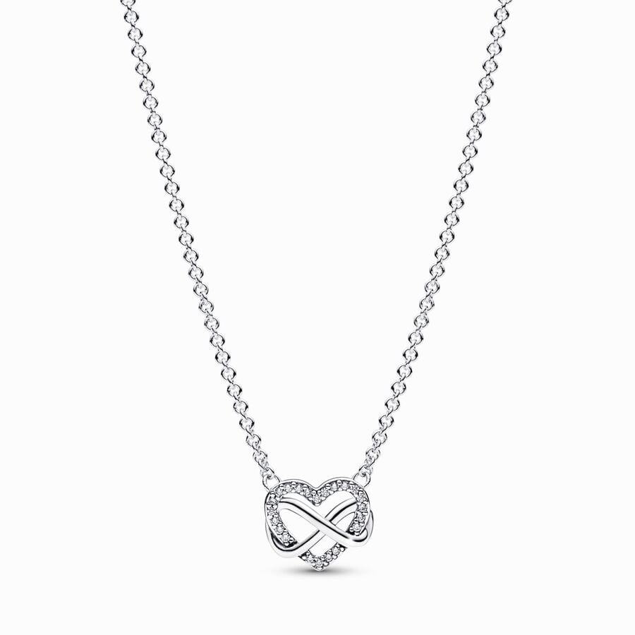 گیره این گردنبند به شکل یک قلب و نماد بینهایت یا ابدیت برش خورده و با نگینهای شفاف زیرکُنیا تزیین شدهاست تا نماد روابط و عشق های ابدی باشد.این گردنبند نقرهای و زیبا را به مجموعه خود اضافه کرده و هرجا که هستید به یاد عزیزانتان باشید.