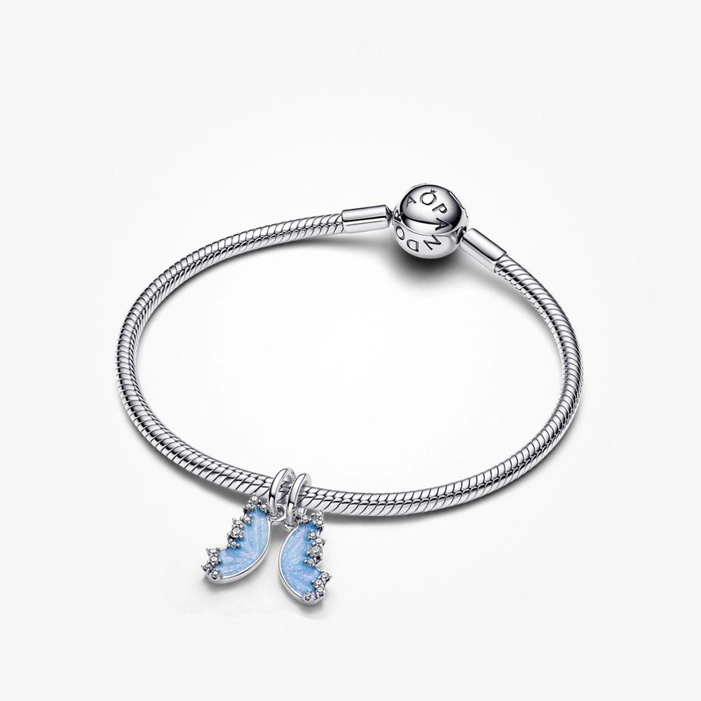 این چارم دوآویزی و دوتکه از نقره استرلینگ ساخته شده و طراحی آن شامل دو نیمه پروانه آبی است که در کنار هم یک پروانه کامل را تشکیل میدهند. هر نیمه با مینای آبی (Enamel) و جزئیات ظریف تزئین شده و قابلیت جدا شدن دارند تا بتوانید یکی را برای خود و دیگری را به فردی عزیز هدیه دهید.این چارم نمادی از ارتباط، دوستی، عشق و پیوندی که با وجود فاصله نیز برقرار میماند است — انتخابی احساسی و زیبا برای زوجها، بهترین دوستان یا اعضای خانواده.با چارم پروانه آبی دوتکه پاندورا، پیوند قلبی خود را با فردی عزیز ماندگار کنید — جواهری احساسی، زیبا و پرمعنا.