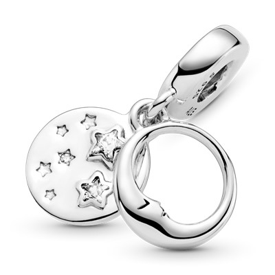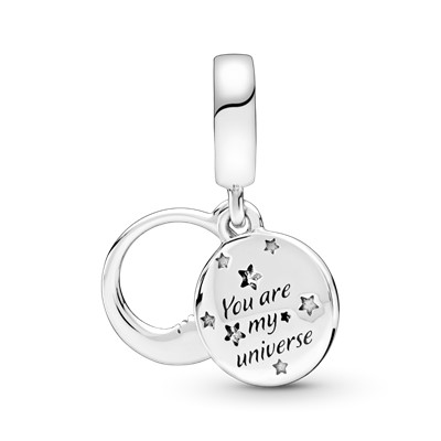علاقهی خود به آسمان شب و ماه هلالی را که گویی در میان ستارهها خوابیده است با این چارم دو بخشی و نقرهای نشان دهید.دیسک اول این چارم، دیسک نقرهای و توخالی به شکل یک ماه هلال خوابیده و دیسک دوم، دیسکی نقرهای با ستارههای درخشان روی آن میباشد.ستارهها برای درخشش هرچه بیشتر با نگینهای شفاف زیرکُنیا تزیین شدهاند و پشت دیسک دوم شما میتوانید پیام "تو کهکشان من هستی" (You are my universe) را ببینید.این چارم زیبا را به شخص خاصی هدیه داده تا نشان دهید عشق شما مرزی ندارد.