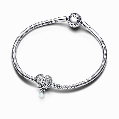 به افتخار فرشتههایی که در زندگی شما هستند این چارم زیبا و درخشان را به مجموعه خود اضافه کنید. این چارم زیبا و قلبی با 68 نگین شفاف زیرکنیا تزیین شده است. این چارم نقرهای همراه با آویز اوپال آن که در آزمایشگاه ساخته شده است را به مجموعه چارمهای دقایق خود اضافه کرده و کلکسیون خود را کامل کنید.