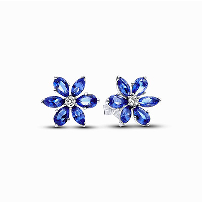 با گوشواره میخی گل خوشهای پاندورا زیبایی طبیعت را به جواهرات و ظاهر خود بیاورید.این گوشواره ها با نگین های آبی زیرکنیا تزیین و درخشان شده اند. نگین های گرد و گلابی شکل درخشش و جلوه هایی متفاوت را روی این قطعه به نمایش میگذارند. این گوشواره ها با الهام از تفسیر چگونگی شکل گیری گل ها و برگ ها در طبیعت طراحی و ساخته شده است.