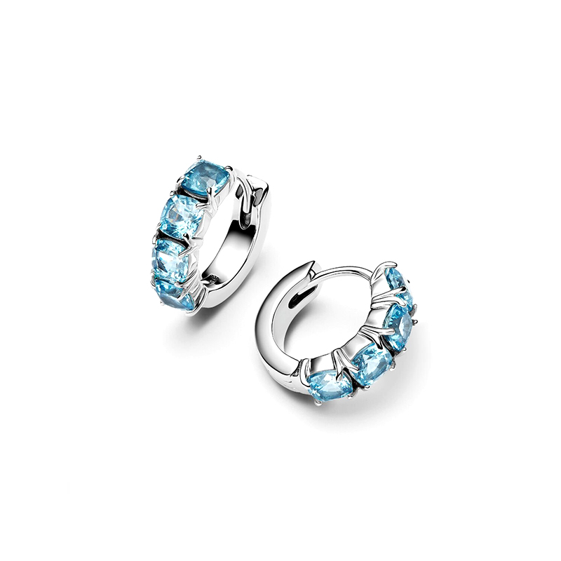 با این گوشوارههای خیرهکننده، رنگی زنده به استایل خود اضافه کنید. ردیفی از کریستالهای تراشخورده با شکل کوسنی و در طیف زیبای آبی آکوامارین، جلوهای چشمنواز و شیک به ظاهر شما میبخشند.
