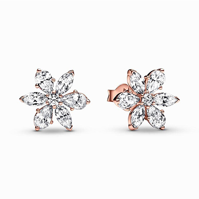 با گوشواره میخی گل خوشهای پاندورا زیبایی طبیعت را به جواهرات و ظاهر خود بیاورید.این گوشواره ها با نگین های شفاف زیرکنیا تزیین و درخشان شده اند. نگین های گرد و گلابی شکل درخشش و جلوه هایی متفاوت را روی این قطعه به نمایش میگذارند. این گوشواره ها با الهام از تفسیر چگونگی شکل گیری گل ها و برگ ها در طبیعت طراحی و ساخته شده است.