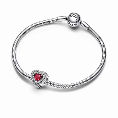 با چارم مهرهای قلبهای درخشان پاندورا، عشق را به فضای اطراف خود اضافه کنید! این چارم زیبای نقرهای، دارای ردیفهایی از نگینهای شفاف کوچک زیرکُنیا به شکل قلب بوده که در مرکز آنها یک نگین قرمز بزرگتر و درخشانتر حضور دارد. در کنارههای این چارم قلبهایی برش خورده است که به این چارم رمنس و عشق بیشتری میبخشند.این چارم را به یاد عزیزانتان همراه داشته یا به شخص خاص خود هدیه دهید تا عشق خود را نشان دهید.