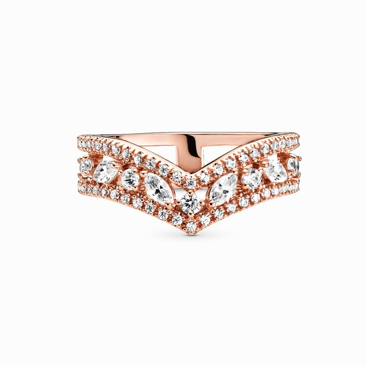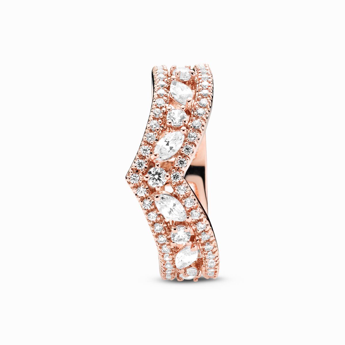 با حلقه پهن جناغی نگیندار پاندورا کلکسیون خود را کامل کنید. این حلقه زیبا با الهام از مجموعهی حلقههای جناغی آرزوی ابدی پاندورا طراحی شدهاست.این حلقه پهن رزگلد با نگینهای زیرکُنیا شفاف تزیین شده و ظاهری جناغی دارد اما پهنتر است تا در دست شما بیشتر به چشم بیاید.