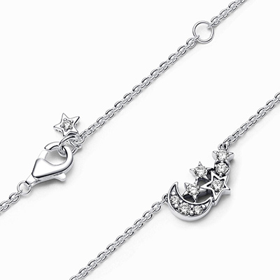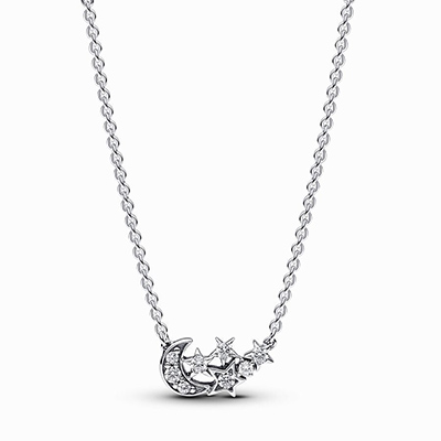 این گردنبند نقرهای و زیبا آسمان زیبای شب را به تصویر میکشد. این کار خاص به شکل ماه و ستارهها طراحی شدهاست. این گردنبند با نگینهای شفاف زیرکُنیا تزیین و درخشانتر شدهاست. این طرح را به مجموعه خود اضافه کرده و بدرخشید.