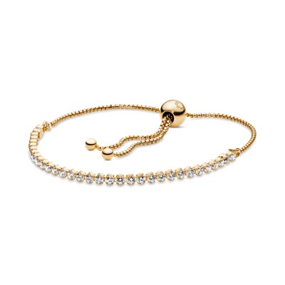 از اسم آن اشتباه برداشت نکنید این دستبند فقط برای بازیکنهای تنیس طراحی نشده است و روی مچ دست هر زنی میدرخشد! این دستبند که با الهام از طرحهای قدیمی دستبندهای تنیسی پاندورا ساخته شدهاست دارای روکش طلا ۱۸ عیار بوده و با نگینهای شفاف زیرکُنیا تزیین شدهاست.همچنین کشویی یا لغزنده بودن گیرهی آن به شما این اجازه را میدهد که اندازه آن را به دلخواه تغییر دهید.